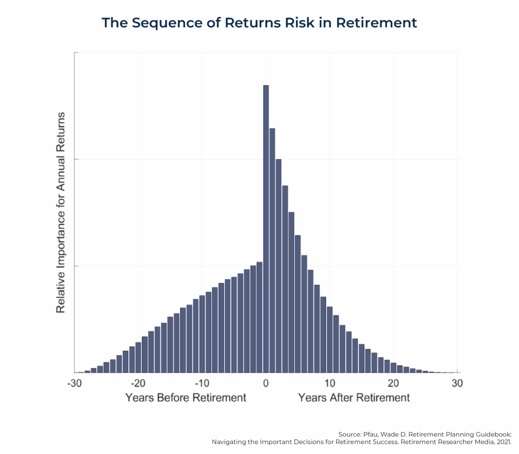 The sequence of return risk states the following: not only does the magnitude of investment returns matter, but the sequence of those returns matters as well. Specifically, a particularly poor series of investment returns during the early years of retirement can permanently damage and derail a long-term retirement plan.